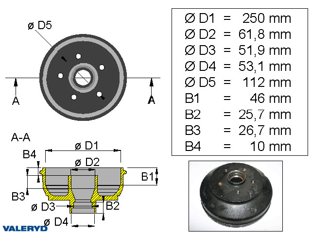 Bromstrumma 250×40 5×112 BPW S2504 1600kg mm-lager